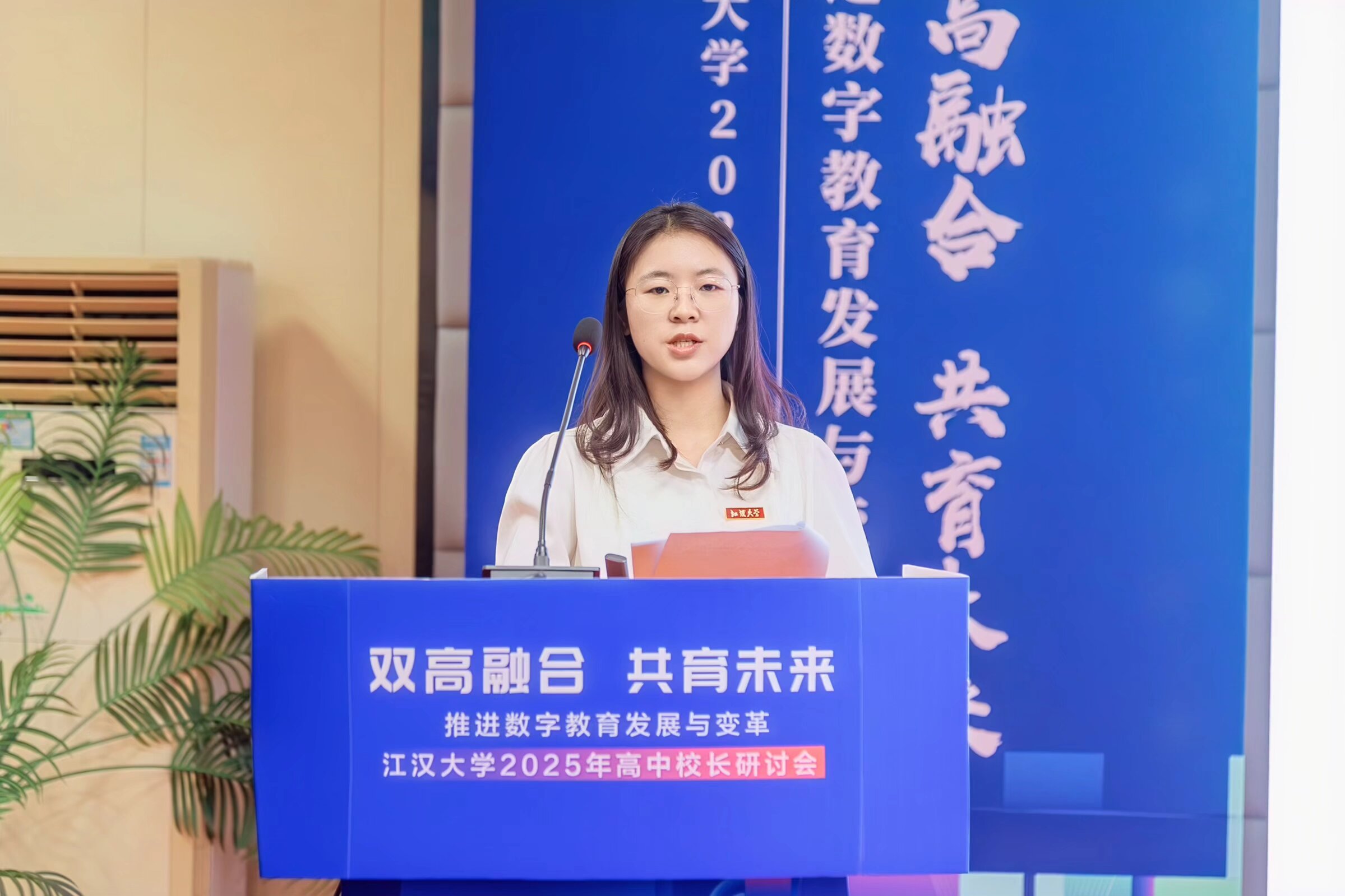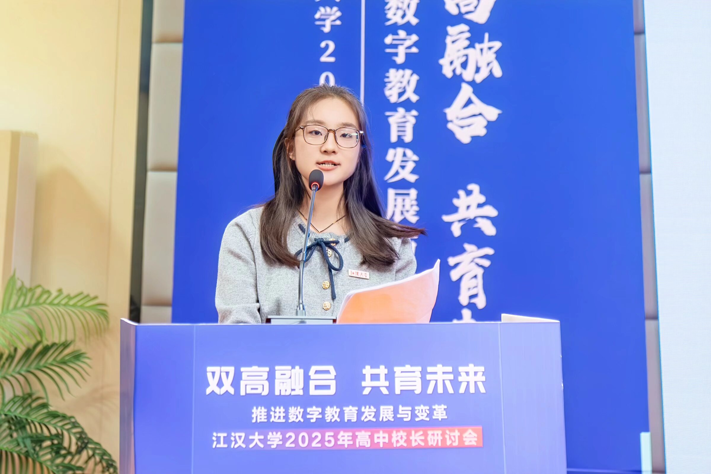 在“师生代表分享”环节,我校生命科学学院青年教师田广梅分享与江大的故事:大一鼓起勇气进入实验室,在胡长峰教授信任下研究生物学难题;经历多次失败后在《美国科学院院报》发表论文;打破常规直博北京大学,最终学成归来,从胡老师的学生变为同事,完成从三角湖畔到未名湖畔再到三角湖畔的双向奔赴。随后,我校2022级学生、免试直博华中科技大学的陈欣宇同学,则从学生的切身体验出发,分享了一个曾“丢失罗盘”的迷茫女孩,如何在江汉大学这片“充满温度的沃土”上被点亮、被托举,最终找到人生方向的真实旅程,为“双高融合”的必要性提供了鲜活注脚。