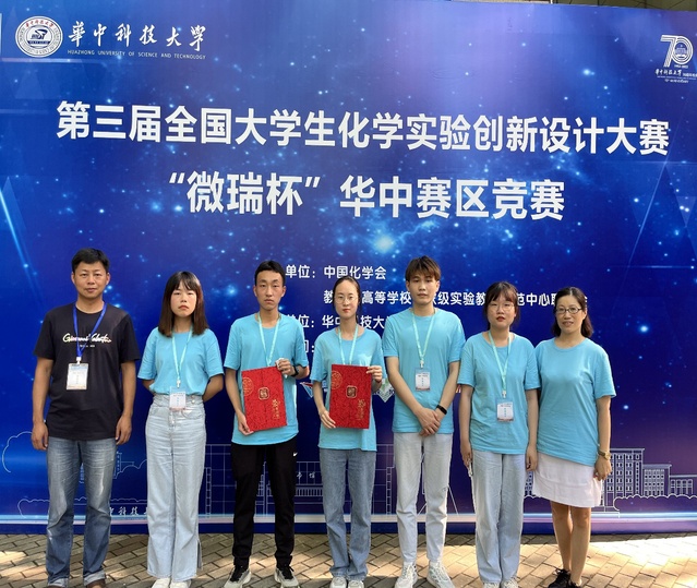 全国大学生化学实验创新设计大赛是由中国化学会和教育部高等学校国家级实验教学示范中心联席会主办的全国性大学生学科竞赛。竞赛旨在建立一个大学生实验创新能力的展示与交流平台,推动我国高等学校实验教学改革,夯实大学生的化学基础知识、基本理论和基本技能,强化大学生发现问题、分析问题和解决问题的能力,培养大学生的创新意识、创新精神和创新能力。竞赛分为新创实验、改进实验和科普实验3个赛道,各参赛高校每个赛道只能推荐1支队伍参赛,初赛和复赛均为双盲评审。本届华中赛区竞赛由华中科技大学承办,是7个赛区中唯一线下进行的,来自武汉大学、华中科技大学、中国科技大学、郑州大学、南昌大学等73所高校的173支队伍同台竞技,共产生一等奖25项、二等奖43项、三等奖52项。