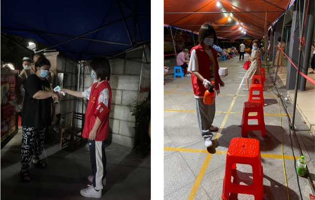 在社区服务的几天里,我每天8点准时到岗,领了工作牌和印有志愿服务的袖套、进行了体温测量后,就在搭建的小棚子里坐着值守门岗,示意每一位进出人员测量体温、查验健康码、进行出入登记。有时会有上级领导来视察,了解社区防疫工作情况,关心慰问志愿者们。我看到朋友圈里许多朋友都在自己的社区附近志愿者,很开心自己身边有这么多愿意为防疫志愿服务的朋友,也希望自己能为社区防疫工作献出力量。