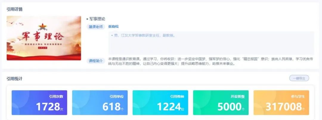 从2020年初至今,已有600余家单位、30万多名学生选用他的课程学习,或者由他进行在线教学。平均每月新增选课人数8000多人。以最近一个完整学期为例,已新增深圳大学7300余本科生、天津大学6650名研究生、湖北大学5537名本科生等省内外高校学生选用。深圳大学教务部于2020年和2022年两次给予他教学效果好评。