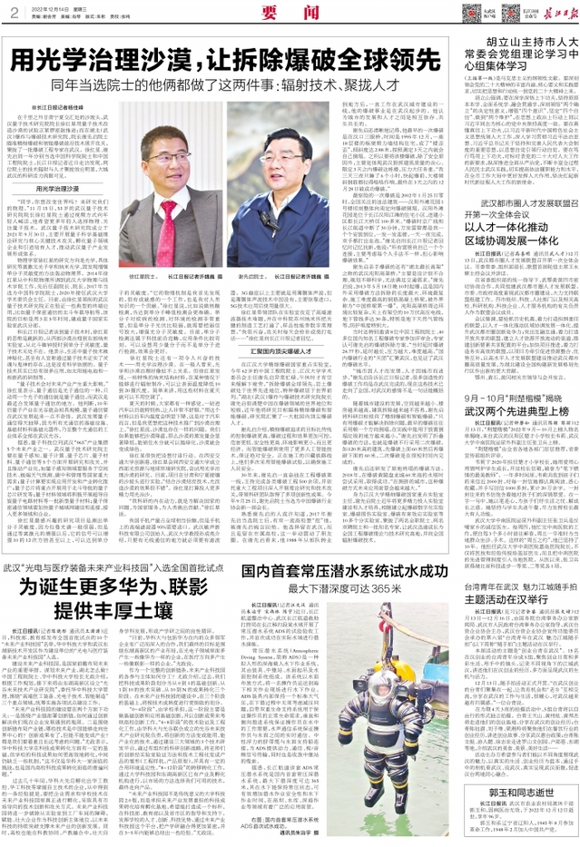 长江日报 - 用光学治理沙漠,让拆除爆破全球领先 http://cjrb.cjn.cn/html/2022-12/14/content_248434.htm